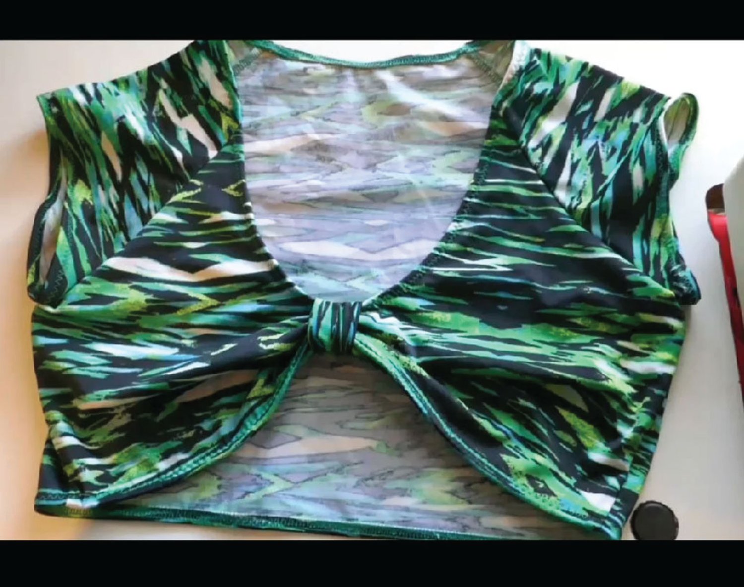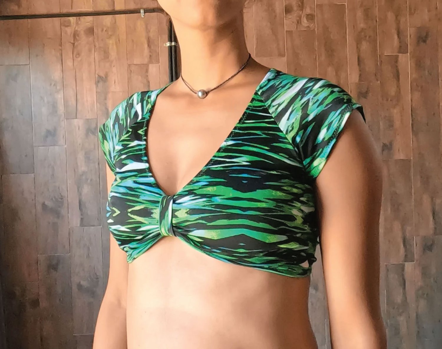 Bikini top with short sleeves an v neck.