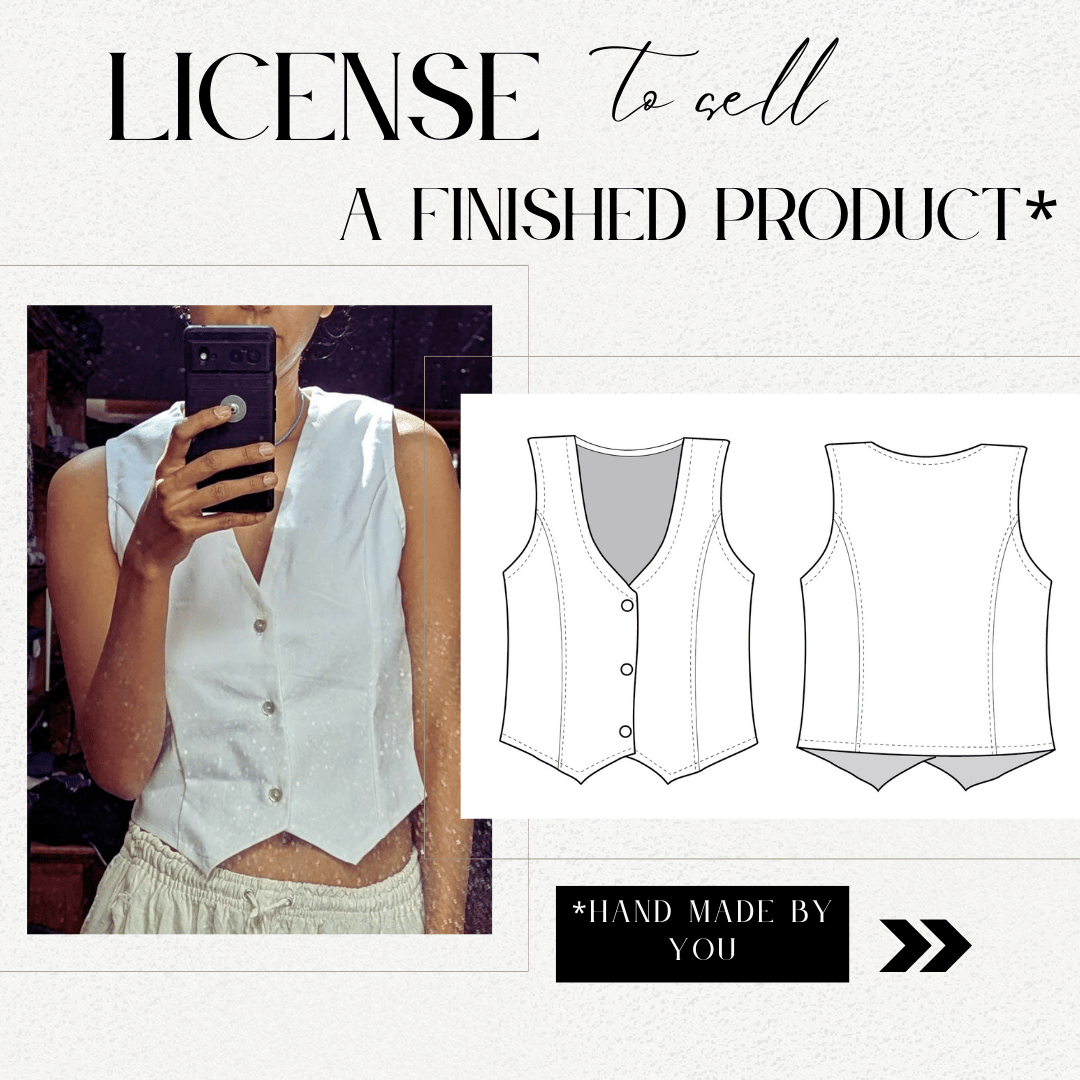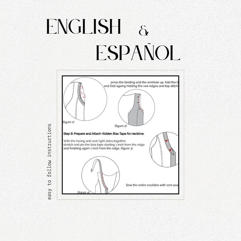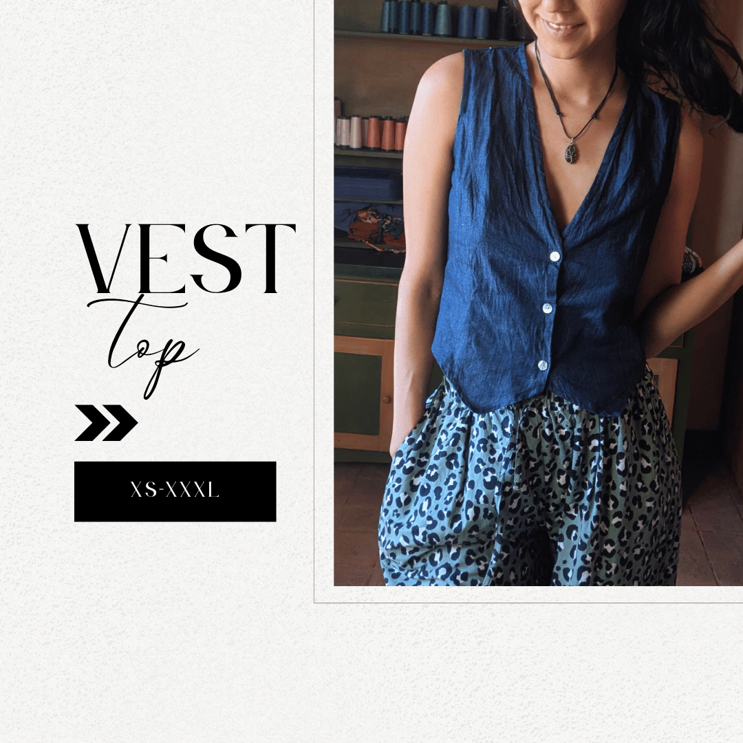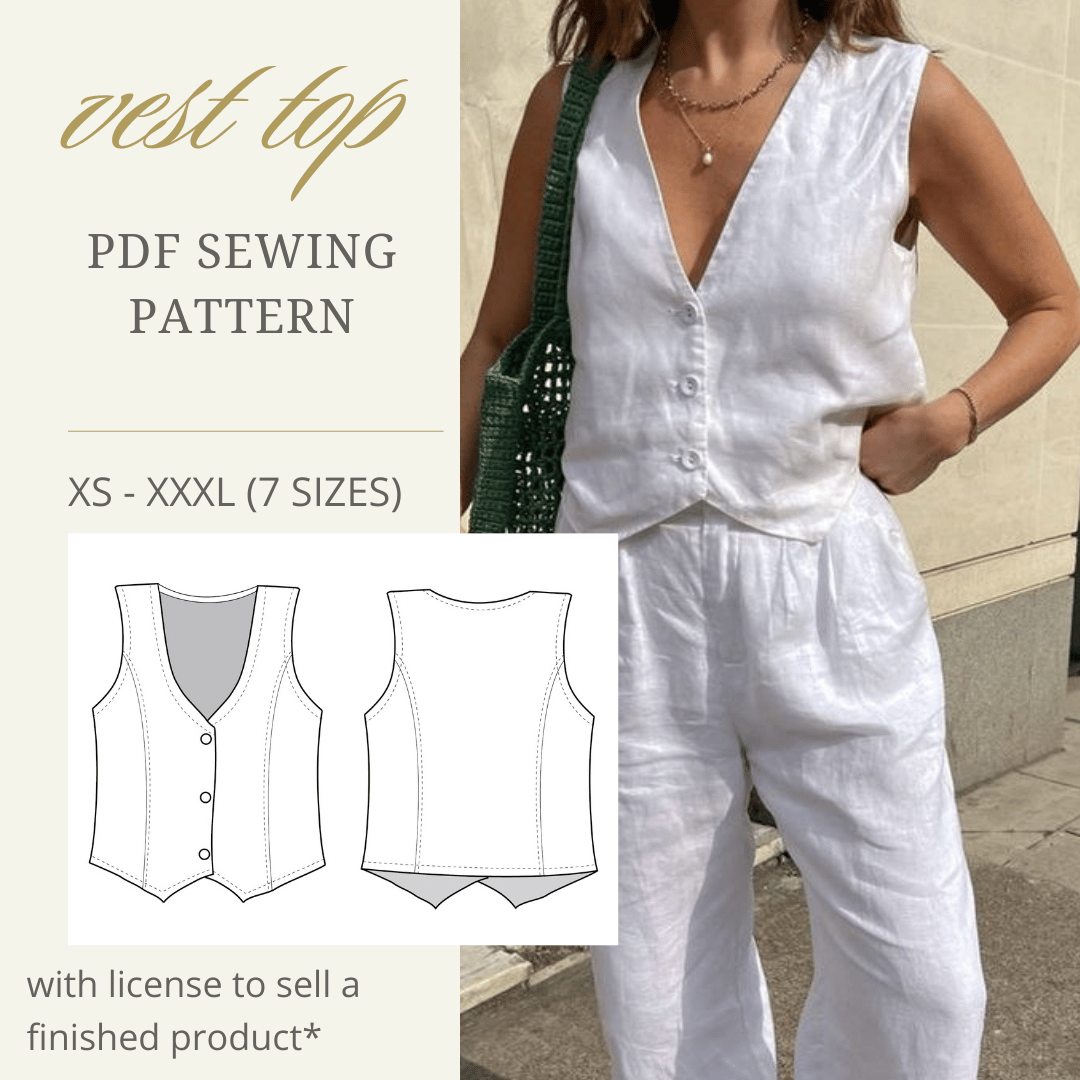 PDF SEWING PATTERN. Easy vest top for beginners, size xs-xxxl, with license to sell a finished product. Espanol & English