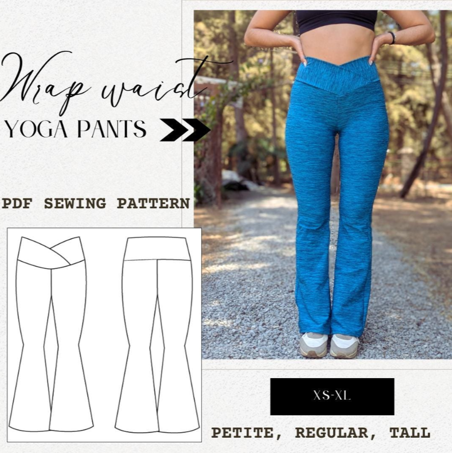 high waisted, crossover waistband flare pants. 3 lengths: petite, regular and tall. 5 sizes available: xs-xl