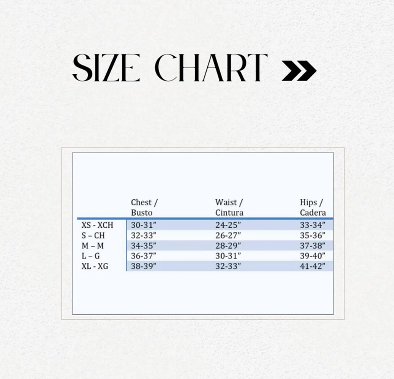 XS- chest 30-31" | waist 24-25” | hips 33-34”